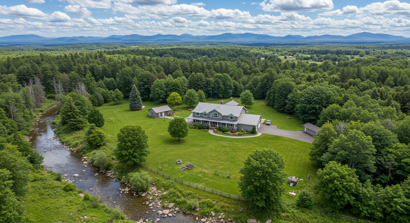 The interior of the home at Clearview Farm features sky-high 22-foot ceilings, stunning Italian Capoferri windows, and a sleek and modern Boffi-designed kitchen. Floors of polished concrete are found throughout the ground level, giving the home a contemporary feel; upstairs, you’ll find some gorgeous Dinesen wide plank flooring. You’ll feel like you’re on vacation cozying up to one of the four fireplaces — there’s even one outdoors! The home’s amenities include a ceramic oven, an elevator, and multiple decks that offer unobstructed views of the farm and mountains in the distance.