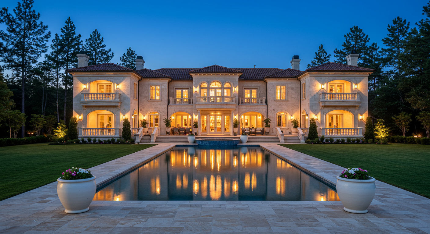 The gorgeous hardwood floors give this home an almost historic feel. Other incredible amenities include a gourmet kitchen, a stunning backyard pool, luxurious bathrooms with freestanding tubs, and a gorgeous backyard pool. Other luxury details include a wine cellar, bar, private study with mahogany built-ins, a media room (that can easily be updated to become a home theater), and gorgeous water features.
