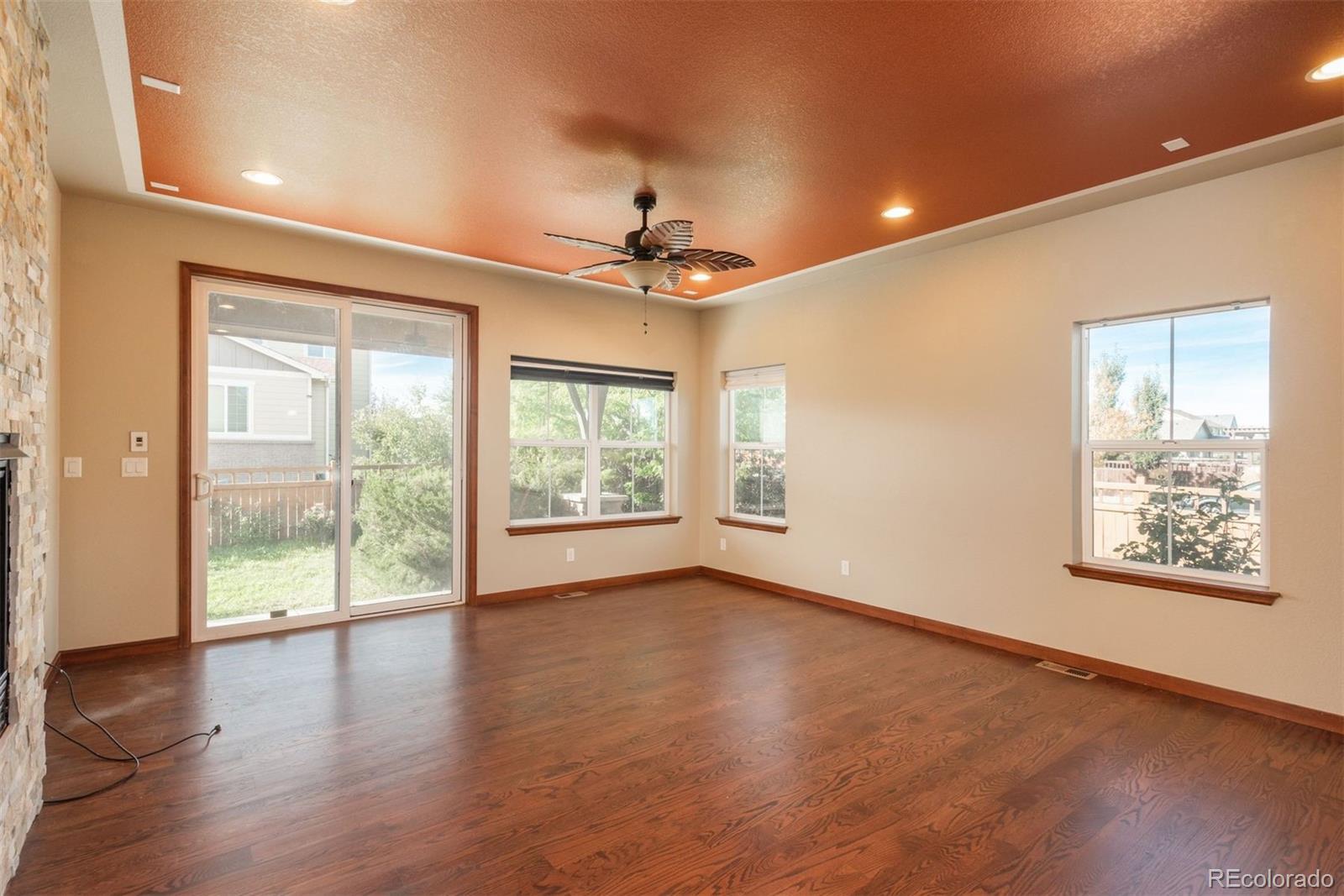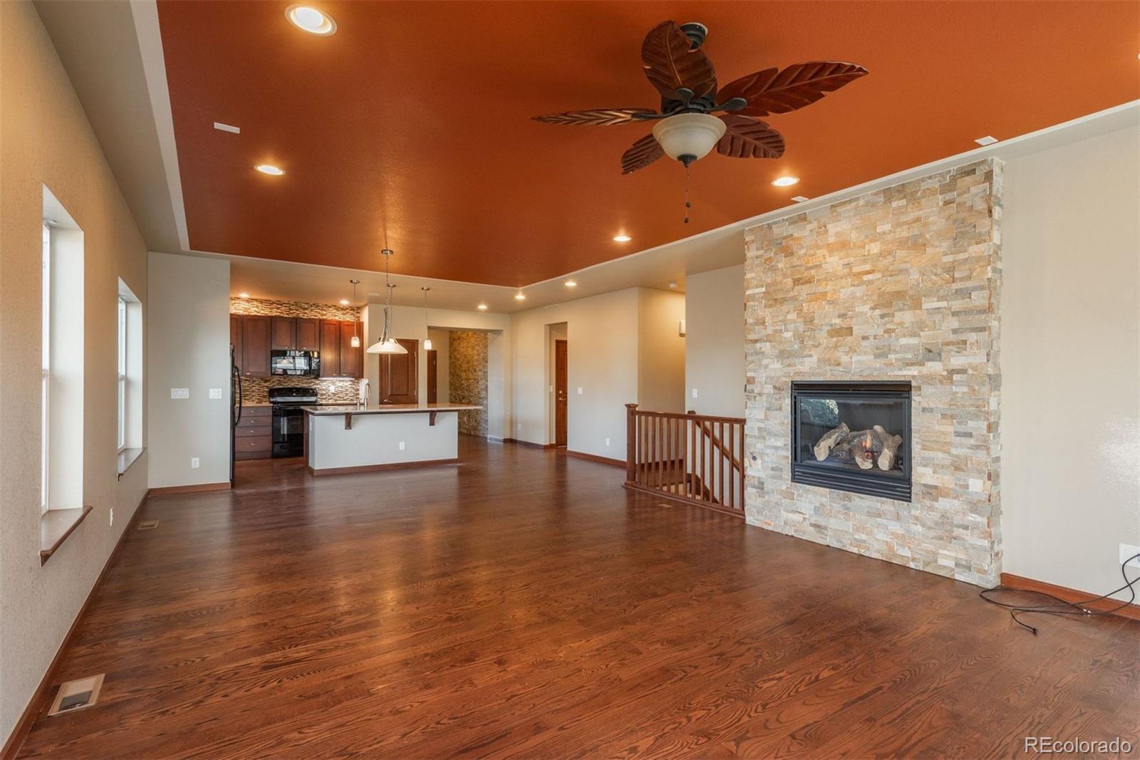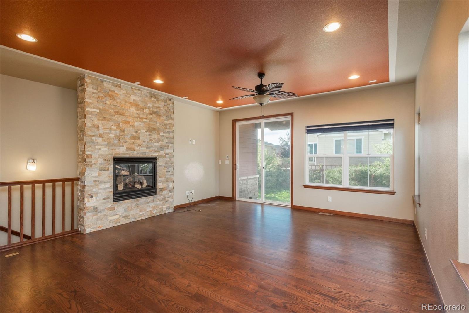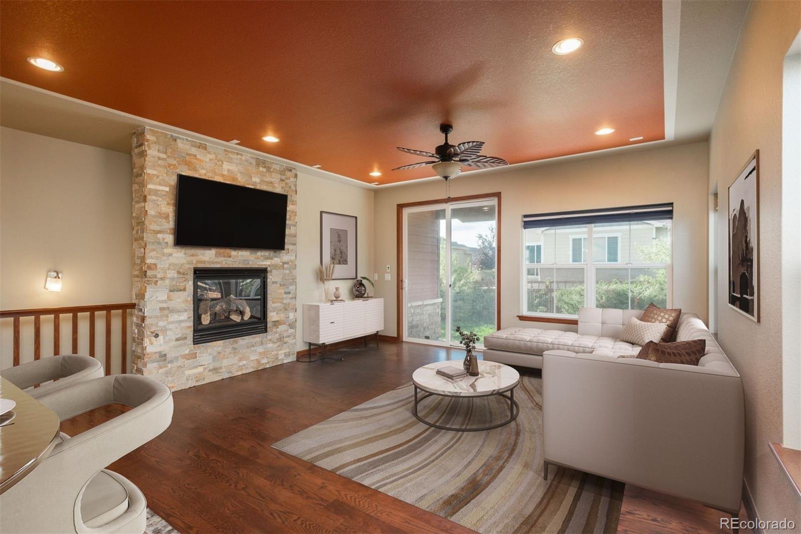 Welcome to this beautifully appointed corner-lot model home nestled in the heart of Aurora's vibrant Painted Prairie community, where thoughtful design blends seamlessly with everyday comfort and convenience. From the moment you step inside, you're welcomed by a warm and inviting entryway that flows effortlessly into the main living areas. Rich engineered hardwood flooring stretches across the main level, leading you to an expansive living room anchored by a stunning custom stone fireplace offering both elegance and a cozy focal point. Just off the main hallway, a private study provides a quiet space ideal for working from home or managing day-to-day tasks. The open-concept kitchen serves as the true heart of the home, featuring sleek quartz countertops, upgraded cabinetry, and high-end finishes. Perfectly integrated with the dining and living areas, this space is designed for both effortless entertaining and relaxed everyday living. The primary suite is conveniently located on the main floor, offering a peaceful retreat complete with an en suite bath and a generous walk-in closet. Downstairs, the finished basement continues the home's elevated feel with a large recreation or media area, an additional bedroom with a full bathroom, ideal for guests, and a versatile unfinished space ready to be transformed into a fourth bedroom, home gym, or creative studio. Set in one of the Denver Metro area's most exciting neo-traditional communities, this once model home offers direct access to 129 acres of open space, parks, trails, and community gardens. You're also just minutes from the future Town Center, local dining options, The Gaylord Resort, and Denver International Airport.