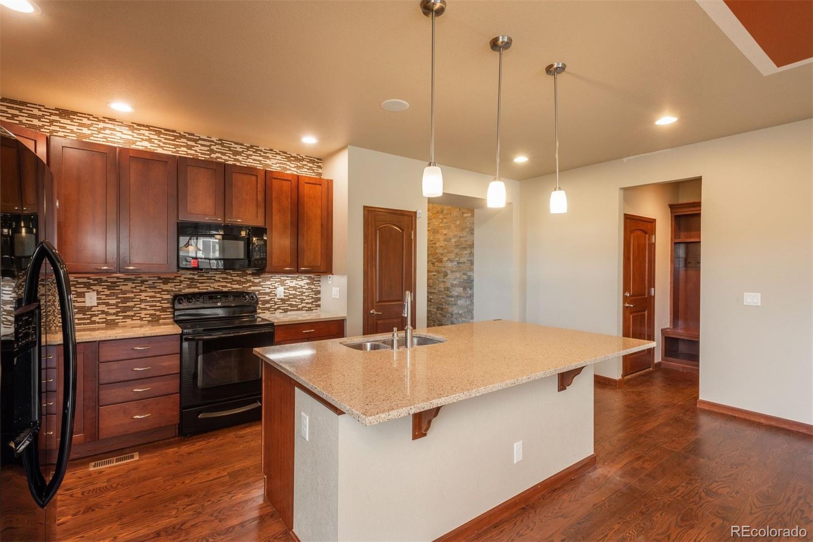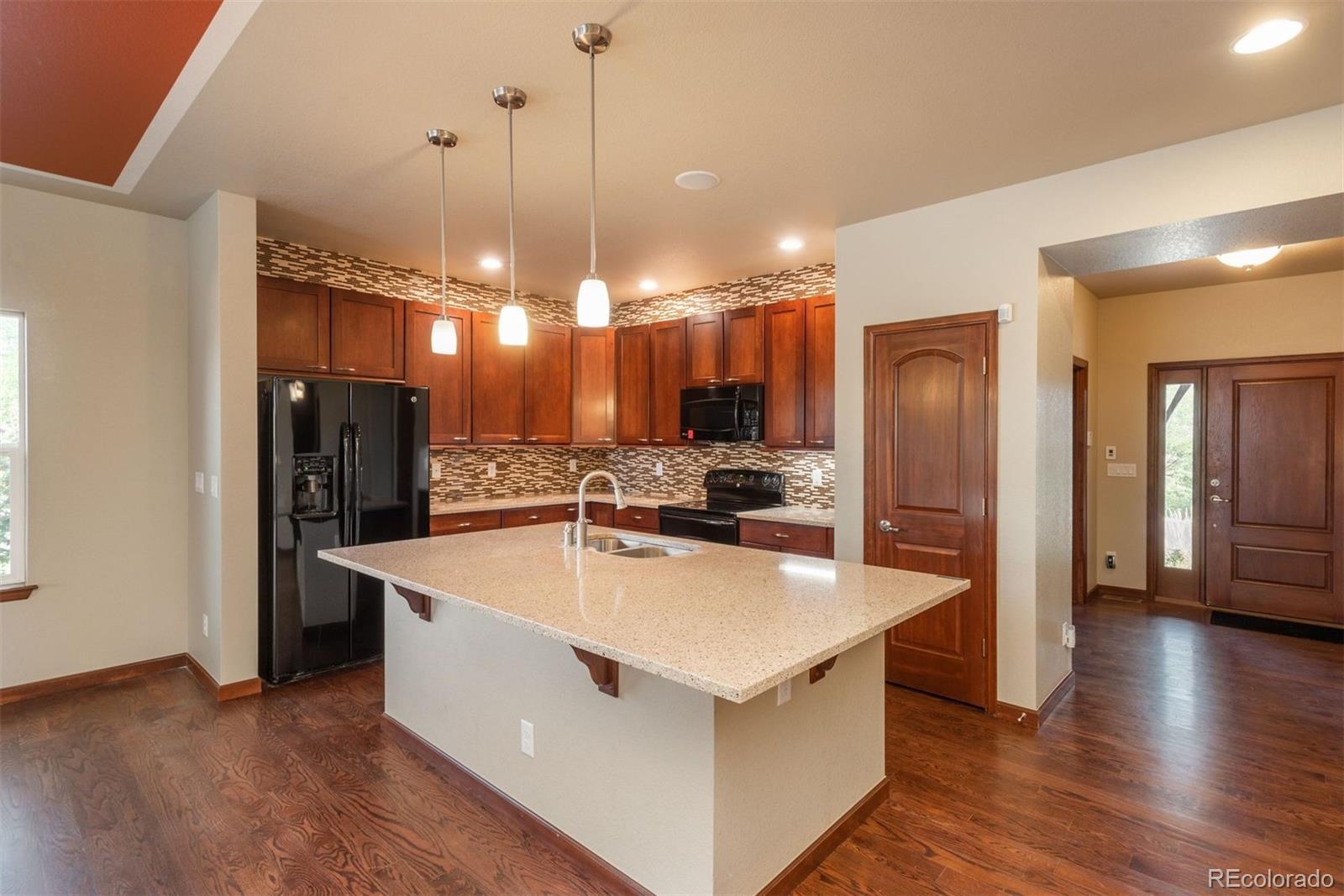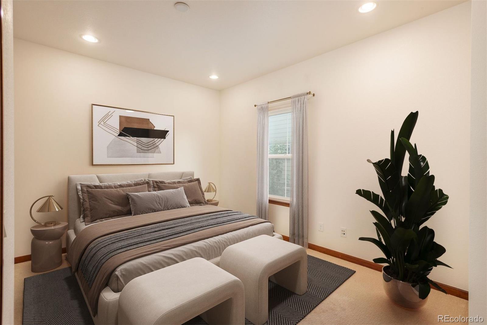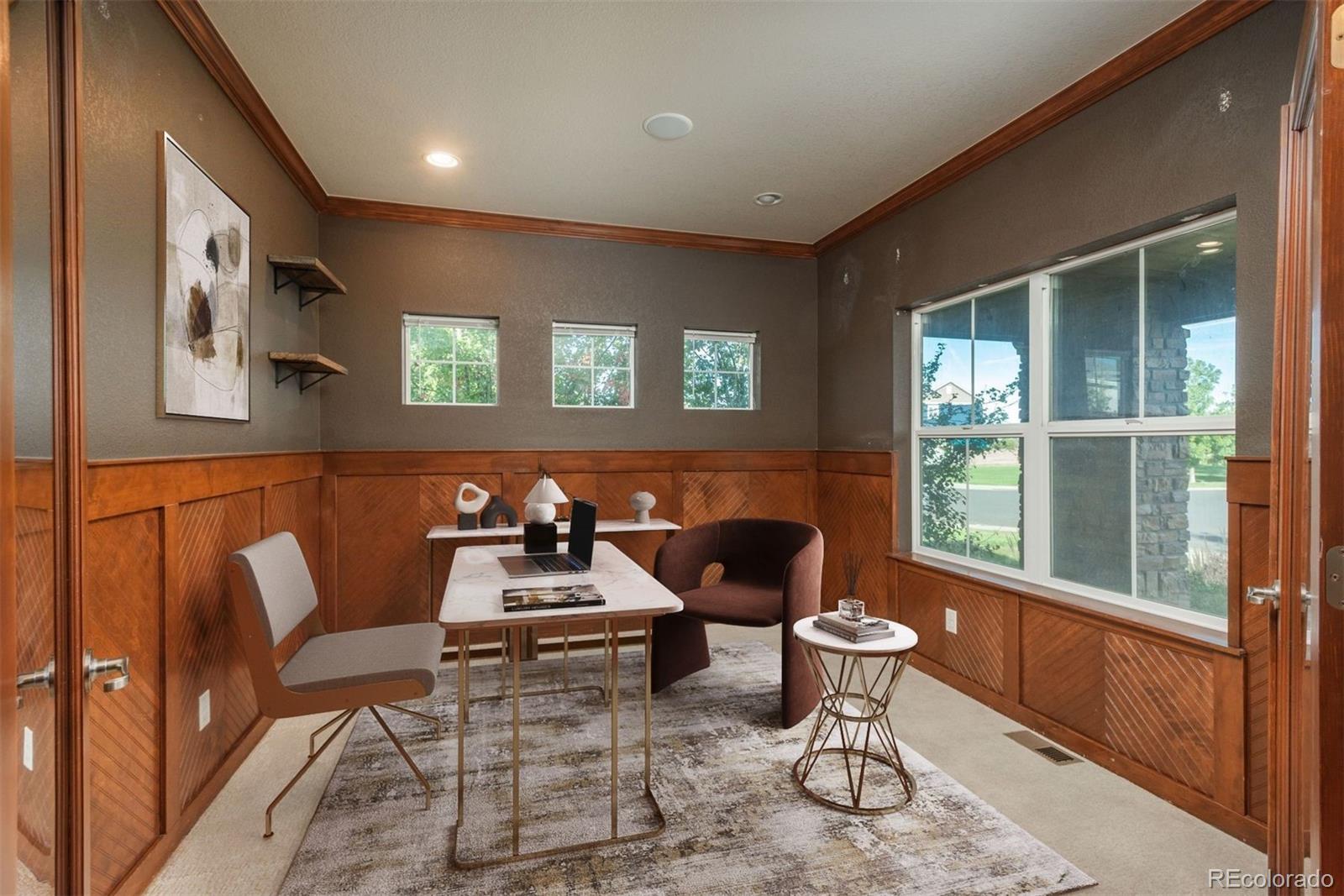 Welcome to this beautifully appointed corner-lot model home nestled in the heart of Aurora's vibrant Painted Prairie community, where thoughtful design blends seamlessly with everyday comfort and convenience. From the moment you step inside, you're welcomed by a warm and inviting entryway that flows effortlessly into the main living areas. Rich engineered hardwood flooring stretches across the main level, leading you to an expansive living room anchored by a stunning custom stone fireplace offering both elegance and a cozy focal point. Just off the main hallway, a private study provides a quiet space ideal for working from home or managing day-to-day tasks. The open-concept kitchen serves as the true heart of the home, featuring sleek quartz countertops, upgraded cabinetry, and high-end finishes. Perfectly integrated with the dining and living areas, this space is designed for both effortless entertaining and relaxed everyday living. The primary suite is conveniently located on the main floor, offering a peaceful retreat complete with an en suite bath and a generous walk-in closet. Downstairs, the finished basement continues the home's elevated feel with a large recreation or media area, an additional bedroom with a full bathroom, ideal for guests, and a versatile unfinished space ready to be transformed into a fourth bedroom, home gym, or creative studio. Set in one of the Denver Metro area's most exciting neo-traditional communities, this once model home offers direct access to 129 acres of open space, parks, trails, and community gardens. You're also just minutes from the future Town Center, local dining options, The Gaylord Resort, and Denver International Airport.